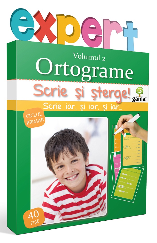 Colecția Scrie și șterge! Expert Limba română reprezintă un instrument util și amuzant de învățare a tainelor limbii române prevăzute în programa pentru ciclul primar. Exercițiile propuse pot fi refăcute de nenumărate ori, cu ajutorul cariocii și al fișelor de lucru plastifiate din aceste carti cu activitati. Copilul va trebui să rezolve diferite activități, printre care: să încercuiască varianta corectă, să stabilească ce propoziții sunt scrise corect, să completeze spații punctate, să rescrie propozițiile incorecte etc.