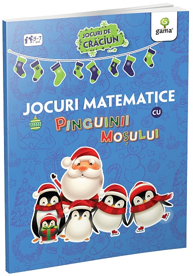 Jocurile matematice cu pinguinii Moșului îl vor introduce într-o lume distractivă cu numere și calcule matematice care îi vor dezvolta logica, concentrarea și atenția, oferindu-i și numeroase pauze de colorat.