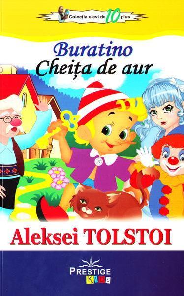 „Aceasta, prieteni, este povestea unui baietel de lemn, pe care voi il cunoasteti foarte bine sub numele de Pinocchio. In Rusia insa, numele lui este Buratino, iar numeroasele lui aventuri i-au captivat si ii captiveaza inca deopotriva pe cei mici si pe cei mari. Cu misterioasa ei cheita de aur, aceasta marioneta, va rog sa ma credeti, nu va conteni sa va faca sa radeti, sa visati si sa va infiorati.