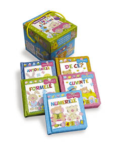 Cutia cuprinde titlurile: De ce?, Cuvinte, Antonimele, Formele, Numerele.