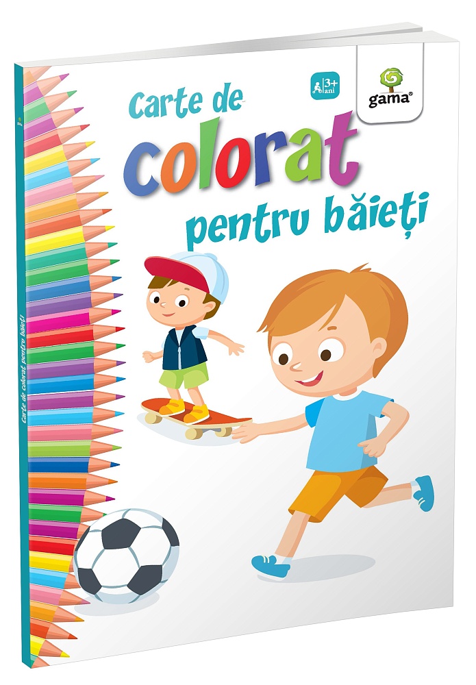 „Cartea de colorat pentru băieți” încurajează copilul să coloreze prinți, pirați sau mașini de curse.