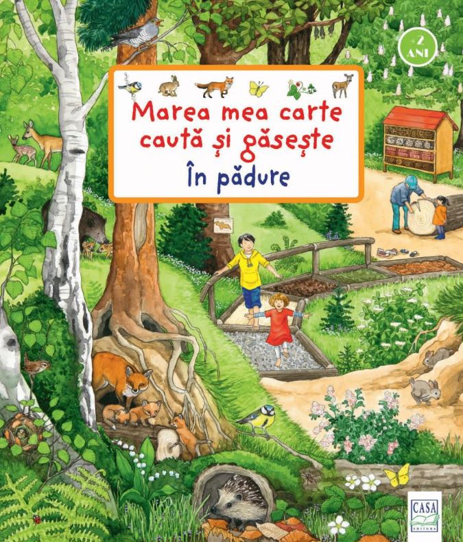 În pădure trăiesc animale mari și mici. Oare unde se adăpostesc ele? Găsește animalele care au pui! Caută pe fiecare pagină cartonată micuța veveriță poznașă! O minunată carte cu imagini, care surprinde transformările pădurii de la un anotimp la altul.
