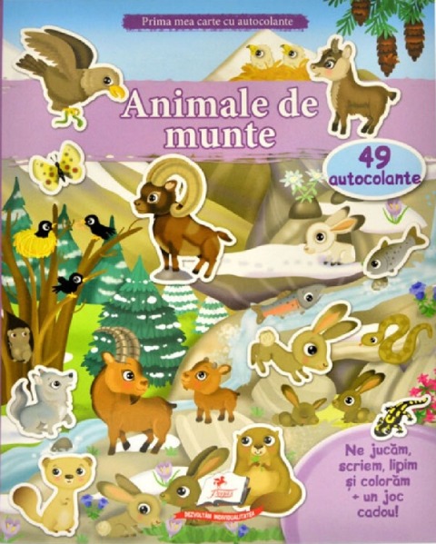 Prima mea carte cu autocolante: Animale de munte. 49 autocolante- Ne jucam, scriem, lipim si coloram + un joc cadou!