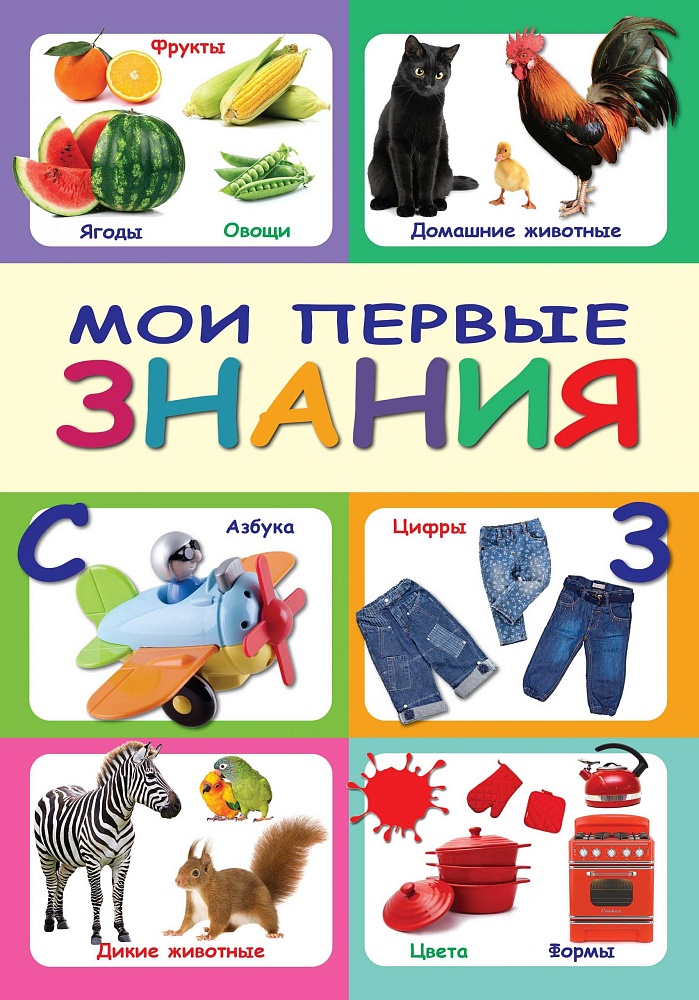 Книга включает самые важные разделы для детей от 1 до 5 лет: - Домашние животные - Дикие животные - Фрукты, овощи и ягоды - Цвета - Формы - Цифры - Алфавит