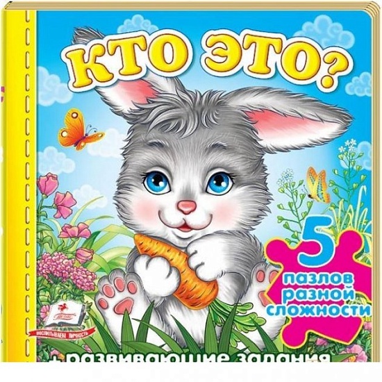 На ярких страницах книги-пазла «Кто это?» малышей ждут лисёнок, волчонок, мишка, зайчик, ёжик и другие добрые зверята, а также весёлые стишки и занимательные задания на внимательность, сообразительность и счёт. Забавные зверушки станут настоящими друзьями детворы, перенесут маленького читателя в волшебный книжный мир и расскажут о себе много интересного.;Развивающие книжки для самых маленьких занимают одно из первых мест в ассортименте издательства «Пегас». Данная книга для детворы — хороший тому пример. Она наверняка заинтересует наших покупателей, поскольку её главными достоинствами являются красочность, познавательность, удобный, компактный формат и ценовая доступность. А какие прекрасные иллюстрации в нашей книге! Они понравятся всем без исключения читателям.;И, конечно же, как и в большинстве наших изданий, лейтмотивом всего является игра.;Все красочные, яркие зверушки здесь — пазлы для малышей. Эти пазлы собираются по картинкам, которые спрятаны под ними. Ещё одна особенность книжки-игрушки «Кто это?» заключается в том, что каждый последующий пазл усложняется — увеличивается количество его частей. А это позволит детворе постепенно совершенствовать навык собирания пазлов.