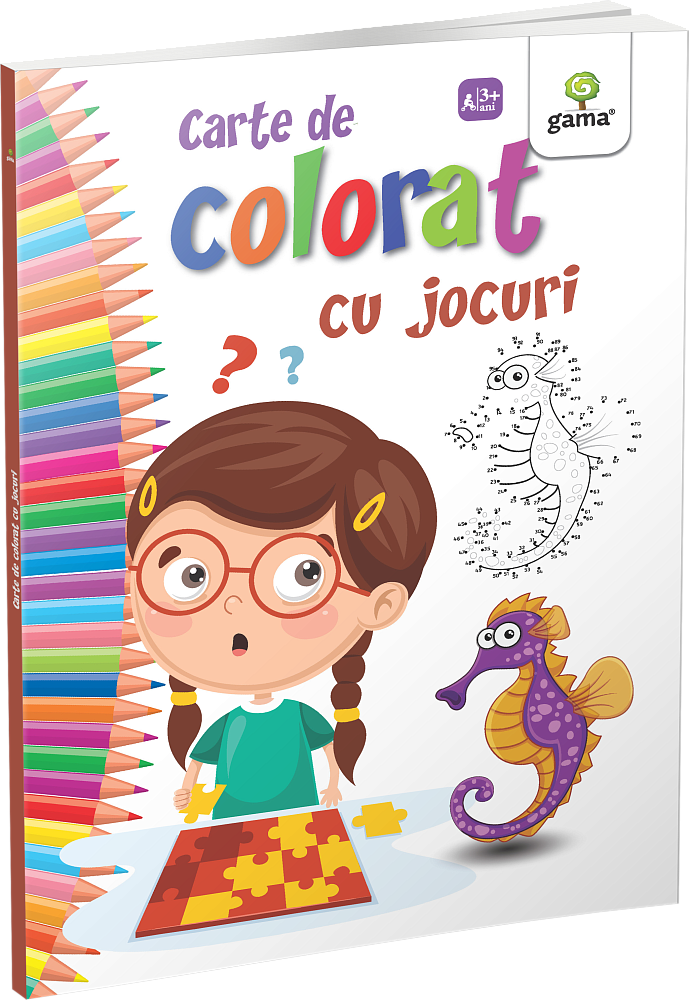 „Cartea de colorat cu jocuri” conține desene care se vor revela după unirea punctelor din contur.