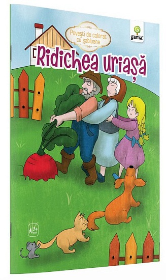 Cartea de colorat „Ridichea uriașă” se poate folosi în trei activități diferite: mai întâi citiți povestea, apoi colorați scenele preferate, iar la final folosiți șablonul inclus pentru a recrea o scenă de basm. Șablonul este detașabil, așa încât desenul preferat se poate reface oricând!