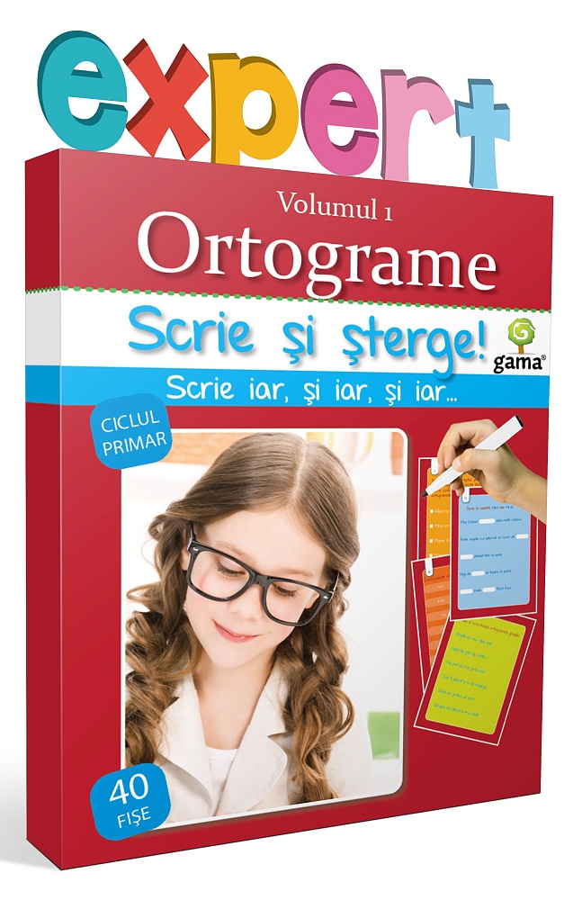 Colecția Scrie și șterge! Expert Limba română reprezintă un instrument util și amuzant de învățare a tainelor limbii române prevăzute în programa pentru ciclul primar. Exercițiile propuse pot fi refăcute de nenumărate ori, cu ajutorul cariocii și al fișelor de lucru plastifiate din aceste carti cu activitati. Copilul va trebui să rezolve diferite activități, printre care: să încercuiască varianta corectă, să stabilească ce propoziții sunt scrise corect, să completeze spații punctate, să rescrie propozițiile incorecte etc.