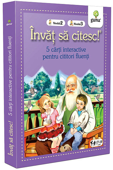 Pachetul Învăț să citesc! - 5 cărți interactive pentru cititori fluenți este destinat copiilor care au făcut deja progrese în citit și reușesc că termine singuri o poveste. În interior veți găsi 4 cărți de nivelul 2 – texte clasice din literatura română, scrise cu caractere mari, ușor lizibile –, și o carte de nivelul următor cu rezumate ale unor opere celebre din literatura universală, pentru a încuraja pofta de citit texte din ce în ce mai lungi.