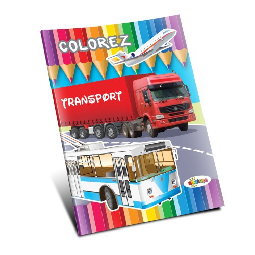 Liniile de contur indică în ce nuanță poate fi colorat fiecare element, fiecare desen fiind însoțit de denumirea în limba română și engleză a mijlocului de transport reprezentat.