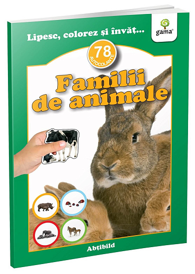 Albumul conține 78 de autocolante. Printre familiile de animale ilustrate în carte se regăsesc: struții, elefanții, cămilele, leii, gheparzii, mistreții, fazanii, iepurii, urșii, cerbul, iezii, jderii etc. Copilul își va îmbogăți cultura generală despre animale și se va distra lipind abțibilduri în locurile special create. Astfel, cartea îi va stimula copilului capacitatea de concentrare, atenția și îi va îmbunătăți motricitatea fină.
