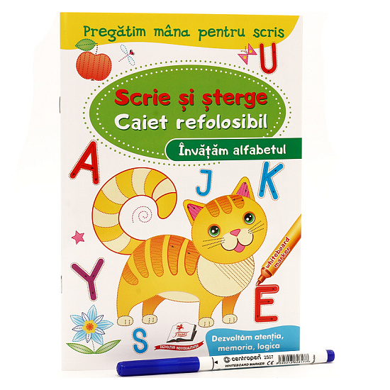 Carioca whiteboard și șervețelul umed – tot ce are nevoie copilul. El va scrie, va șterge și va scrie din nou. Caietele de scriere include activități ce dezvoltă gândirea și memoria, educă răbradea și perseverența.