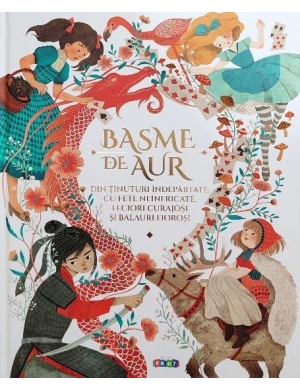 BASME DE AUR din ținuturi îndepărtate, cu fete neînfricate, feciori curajoși și balauri fioroși este o antologie frumos ilustrată care adună la un loc povești clasice bine-cunoscute, dar și basme populare mai puțin știute culese din întreaga lume. De la Crăiasa Zăpezilor, Alice în Țara Minunilor, Vrăjitorul din Oz, Mica Sirenă sau Fata babei și fata moșneagului până la întâmplări cu prințese și prinți din China, Japonia, India, Rusia, Finlanda, Norvegia, Danemarca, Franța, Anglia, Grecia, țări africane sau sud-americane – toate aceste povești și legende fascinante îi vor încânta pe copiii dornici de aventuri și îi vor purta prin minunata lume a basmelor.