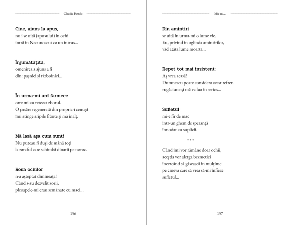 Mie-mi – cartea de identitate poetică a Claudiei Partole.
