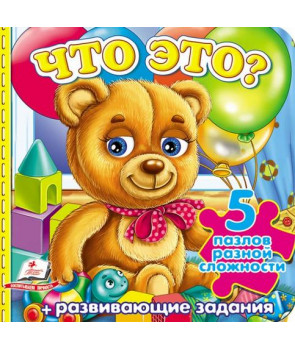 Книга-пазл предлагает просто поиграть в игрушки! Замечательно, не правда ли? Что может быть более привлекательным и заманчивым для 2-3-4-х летнего малыша? Как показывает жизнь, может...Только новая игрушка! Уникальность книжки с пазлами «Что это? Игрушки» в том, что она сама станет новой игрушкой для ребенка. Потому что яркие, красочные кусочки картона, словно по мановению волшебной палочки, превращаются в настоящие игрушки, с которыми можно играться, придумывая с ними всевозможные игры. Какие? Их сюжеты прячутся в детском воображении. А оно, как известно, индивидуально и безгранично. В книжке 5 пазлов разной сложности - то есть, от картонки из 3 частей до картонки из 9 - складывающихся по образцам в 5 игрушек. Веселые стишки поднимают настроение. Будет здорово поучить их наизусть вместе с родителями. Тоже в качестве полезной, развивающей память, игры. Развивающие внимательность, образное и логическое мышление задания на каждом развороте - тоже увлекательная игра в игрушки. Во-первых, потому, что: зайчик-барабанщик; паровозик; робот-трансформер; грузовик; голубоглазая, златоволосая кукла собраны в пазлы собственными ручками. А, во-вторых, эти задания “прячутся” в книжных иллюстрациях на всех разворотах, где пазлы игрушек служат основной частью их сюжетов.