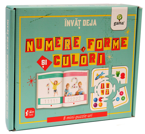 Cutia conține carte de 16 pagini și 8 puzzle-uri cu asocieri bazate pe formă, culoare sau număr. Volumul este potrivit pentru copiii de 3-5 ani.