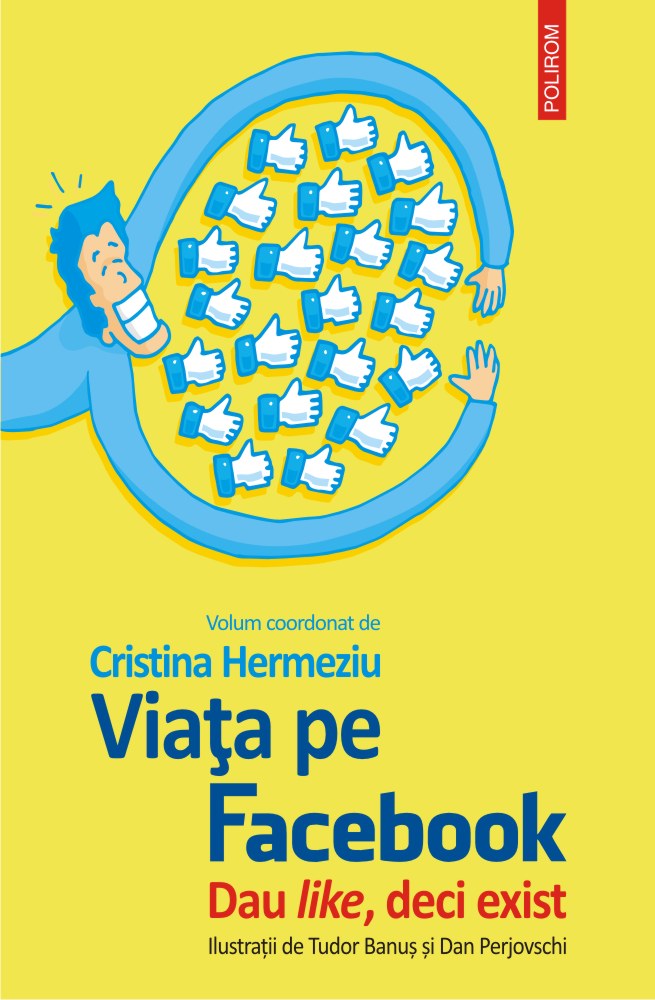 Viata pe Facebook. Dau like, deci exist nu e un manual de utilizare a retelelor de socializare, ci un posibil catalog de relatii "exemplare" cu Facebook-ul in "corpor(e)alitatea" sa. Cartea propune o incercare de iesire din mediu (din apa – la mal), intr-un moment simbolic cind, pe axa istoriei noilor tehnologii, inca dialogheaza mai multe generatii, ultimii mostenitori ai Galaxiei Guttenberg si primii digital natives. Autorii textelor analizeaza fenomenul retelelor sociale potrivit sensibilitatii si expertizei proprii, cu deplina libertate in alegerea unghiului de abordare. - Cristina Hermeziu