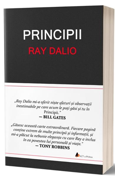 Numit de catre revista CIO „Steve Jobs al investitiilor” datorita faptului ca principiile sale au schimbat radical domeniul investitiilor, Ray Dalio ne propune in cartea de fata sa descoperim care sunt principiile care l-au ghidat in business, dar si in viata. Motivatia lui pentru scrierea acestei carti, devenite in foarte scurt timp bestseller, a fost aceea ca, dupa parerea lui, succesul sau in afaceri nu s-a datorat faptului ca ar fi avut el niste calitati exceptionale de businessman, ci tocmai acestor principii, pe care le detaliaza pe parcursul cartii.