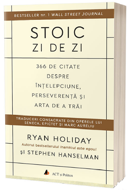 Stoic zi de zi: 366 de citate despre intelepciune, perseverenta si arta de a trai / The Daily Stoic. 366 Meditations on Wisdom, Perseverance, and the Art of Living de Ryan Holiday si Stephen Hanselman este cartea care iti poate schimba perceptia asupra modului in care vezi lucrurile, astfel incat sa te simti in fiecare zi mai increzator, mai optimist si mai fericit. Si mai mult decat atat, cele 366 de citate din marii stoici pe care ti le furnizeaza autorii in acest volum si interpretarile lor te pot ajuta sa iti reconsideri viata si sa incepi sa o traiesti bazandu-te pe alte coordonate.