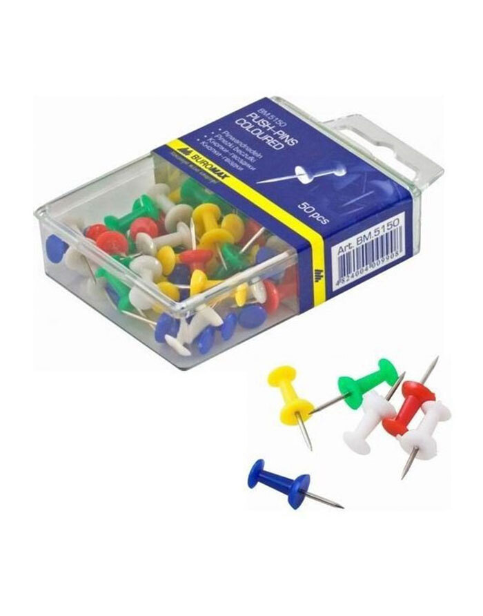 Pioneze colorate elegante BUROMAX sunt proiectate pentru a fixa informații pe plăci de plută și țesături.