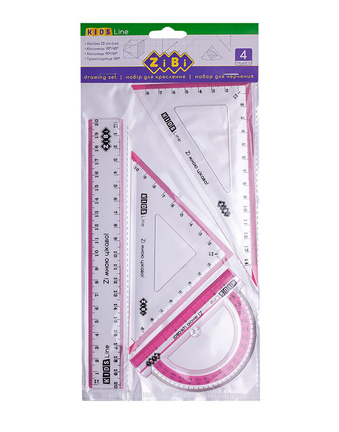 1 raportor cu două scale pentru construirea și măsurarea unghiurilor ascuțite și obtuze de la 0° la 180° (cu diviziuni de 1°) și o scară de măsurare liniară până la 10 cm.