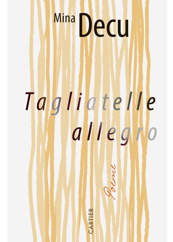 “culoarea ochilor nu mi se schimbă, dar privirea da”” Volumul Minei Decu e o dublă desprindere (+ triplu tulup, cvasi-cvadruplu axel) în toate accepţiunile termenului: în primul rând, ca rite of severance, răsplătind ochiul atent şi cititorul disponibil emoţional cu un arc luminos de cerc de la apropierea emfatică la o distanţare empatică (câştigată şi menţinută, doar în aparenţă paradoxal, prin compasiune), dimpreună cu întreg haloul de hipertrofie senzorială al acestor stări liminale; în al doilea rând, o distanţare de formula minimalistă, metamorfozată într-una dintre cele mai mature, rafinate şi – totodată – persuasive poetici ale corpului din peisajul ultimilor n-zeci de ani. Deşi (dezamăgitor pentru mine!) filamentele de gluten cu preparare rapidă lipsesc cu desăvârşire în afara titlului, în cartea asta – şi mai ales, încă mai limpede în respiro-ul tăcut de după lectură – se găseşte ceva din magia filamentelor electrice de (nu foarte) demult: o incandescenţă blândă, stăpânită, remanentă.” (Florentin Popa) “Natural, puternic, revigorant, come-back-ul Minei Decu se citeşte dintr-un foc, fără să lase pauze de respiraţie. Ca un espresso băut pe stomacul gol, te loveşte din plin, odată ce-ai luat şi ultima gură: totul se răstoarnă elegant peste tine, într-un flux vibrant de energie. Actual şi original, volumul Tagliatelle allegro te ia de mână şi ţi se aşază cuminte în stomac, ca o încărcătură enormă de confetti parfumate, propulsată direct dintr-un tun.” (Alex Frandeș)