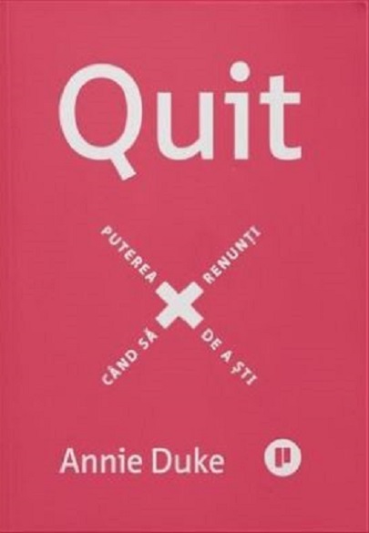 În Quit, Annie Duke ne învață cum să renunțăm mai bine. Pornind de la povești despre sportivi de elită, alpiniști care au urcat pe Everest, fondatori de companii recunoscute, ca Stewart Butterfield, CEO-ul Slack, sau oameni din divertisment, ca Dave Chappelle, autoarea explică de ce renunțarea este esențială pentru succes, când să renunți, când să reziști și care strategii te vor ajuta să economisești timp, bani și energie. Vei învăța: